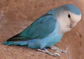 Above is believed to be a (mutated) Masked cross with a Fischer's Lovebird (shown with a blue Masked mutation,