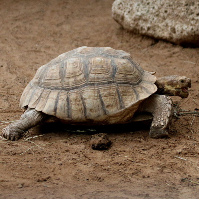 It is the largest "mainland" tortoise and is native to desert and semi-desert habitat of the southern Sahara and the northern part of sub-Saharan Africa.