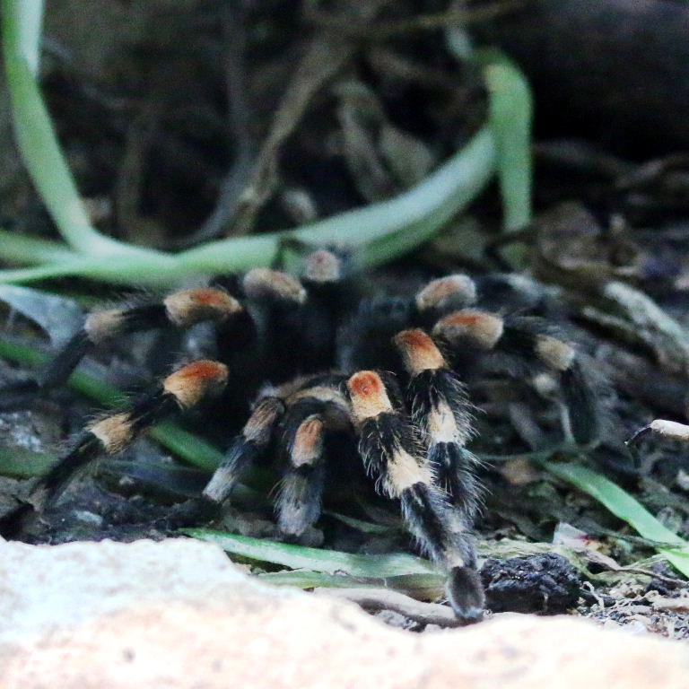 The Mexican Red-kneed Tarantula or Mexican Red-knee Bird-eating Spider is two species of similar-looking